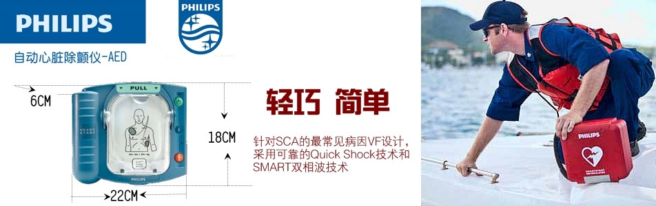 - 飛利浦 HS1智能救心寶(自動除顫器)外形小巧,可以很輕松地攜帶到患者身邊。OnSite具有清晰,簡潔的